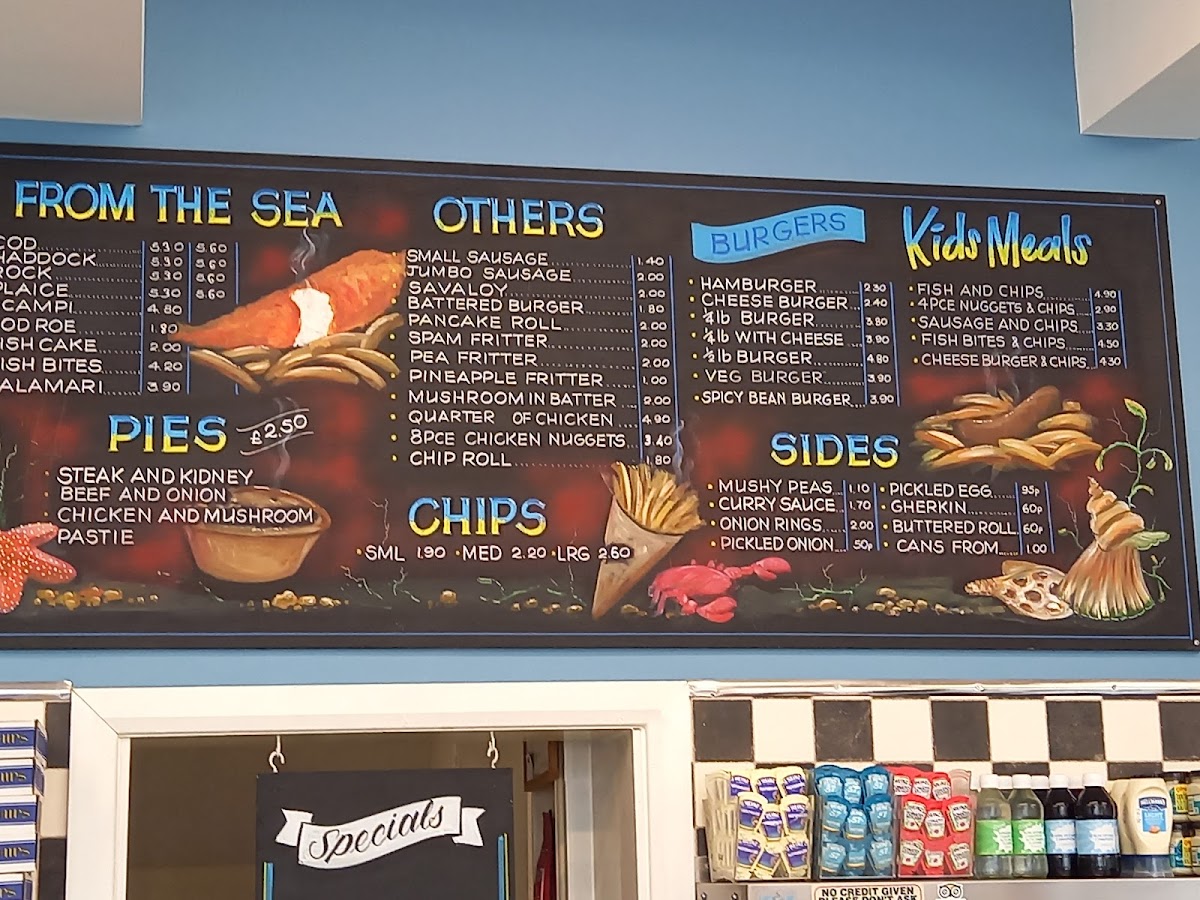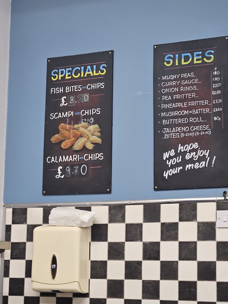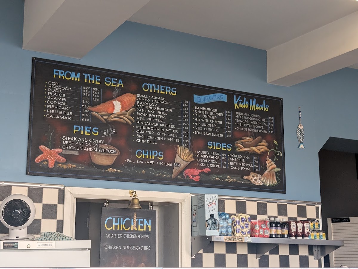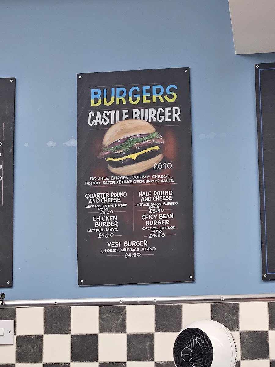 The menu at Castle Fish Bar offers a delightful variety of dishes, showcasing both classic fish and chip shop options as well as some unique items. For those seeking a satisfying meal, the Scampi and Chips stands out as a special favorite, offering a generous portion of scampi paired with crispy golden chips. On the side, options such as Mushy Peas, Onion Rings, and Pineapple Fritter complement any main dish, while the Jalapeno Cheese Bites add a zesty twist for those looking to try something new. The Ish Cake and Ish Bites from the sea provide a perfect alternative to traditional fish, catering to different tastes. If you're in the mood for something less conventional, try the Battered Burger or Pancake Roll. The kids' menu features crowd-pleasers like 4-piece Nuggets & Chips and a Cheese Burger & Chips, ensuring even the little ones have a delicious option. The burger selection includes the classic Hamburger, the Cheese Burger, and even a Veg Burger for vegetarians, as well as the hearty 4lb With Cheese. For a filling, savory option, the Quarter Chicken & Chips or Chicken Nuggets & Chips are ideal choices. With a range of tasty sides and mains, Castle Fish Bar’s menu has something for everyone, ensuring a satisfying experience whether you're stopping by for a quick snack or a full meal.
